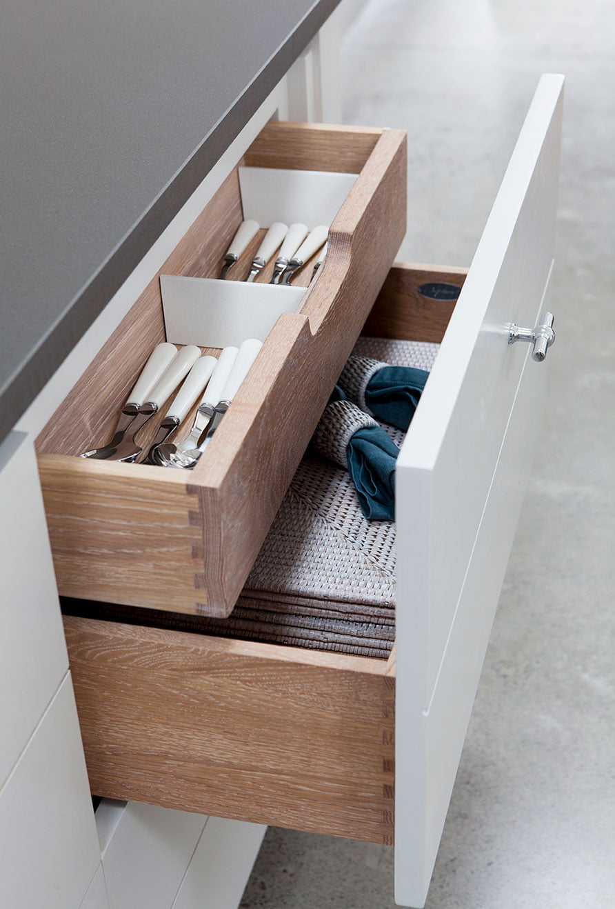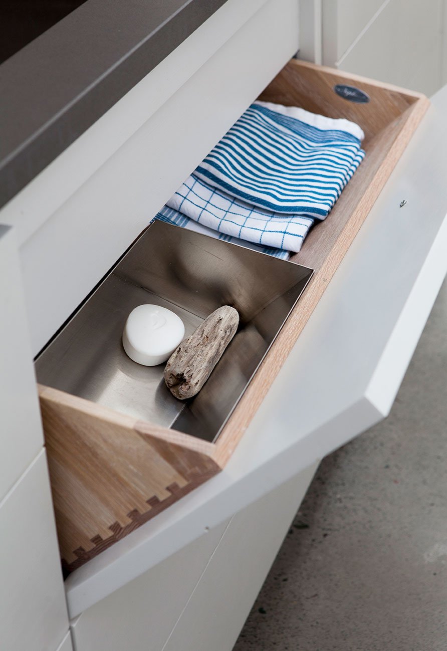 “Tara loved what went on behind the doors of the Limehouse too. The beautifully designed two layered pantry interior, the subtle under counter strip lighting and the metal under-sink storage, all spoke volumes to a busy mother of two.”