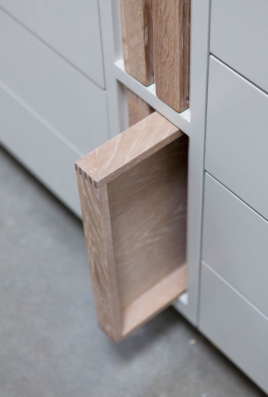Geri and Tara decided on the more modern Neptune Limehouse kitchen for the space. The clean lines and simple, high quality fixtures of the Limehouse were perfect for such a modern space, but Chris was suitably impressed by what else the Limehouse had to offer.